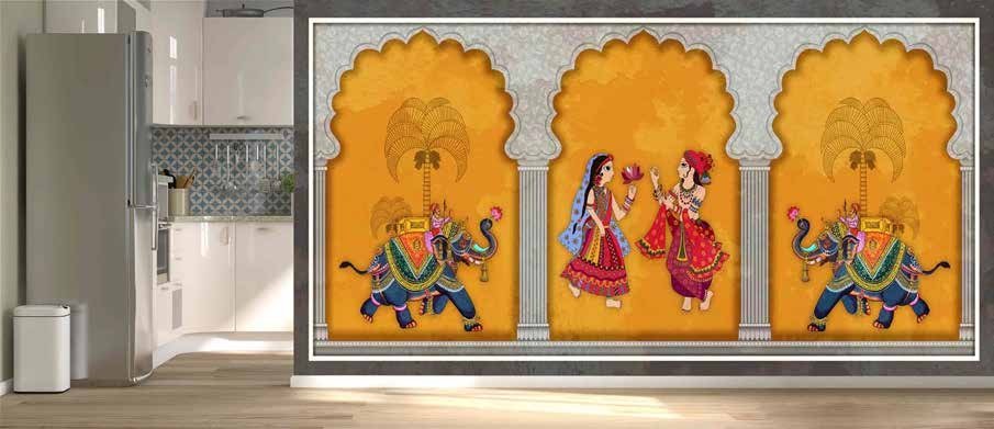 Ideal for living rooms, dining areas, restaurants, and ethnic-themed interiors, these wallpapers create a sophisticated and culturally rich ambience that never goes out of style.